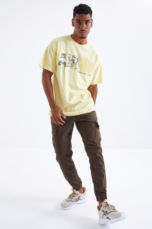 Yellow Air Printed O Collar Men's Oversize T-Shirt - 88097