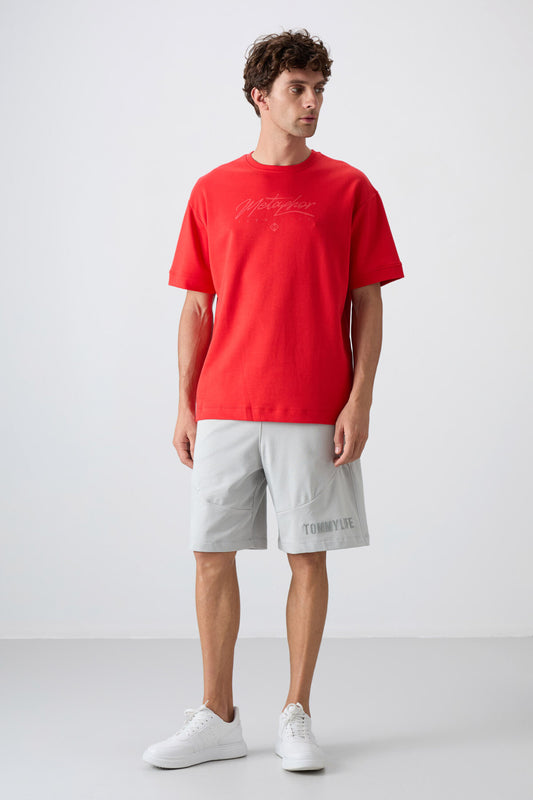 Cotton Right Thick Textured Surface Oversize Fit Printed Men's T-Shirt - 88371