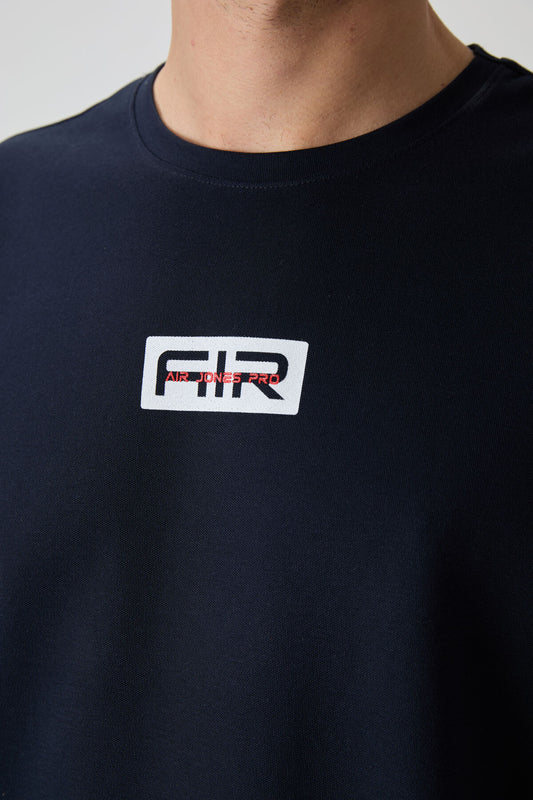 Navy Blue Textured Thick Surface Cotton Oversize Fit Printed Men's T-Shirt - 88367