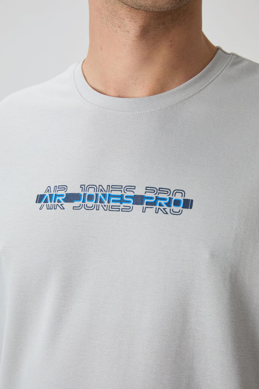 Light Blue Cotton Thick Textured Surface Oversize Fit Printed Men's T-Shirt - 88367