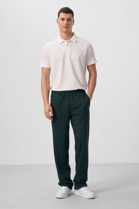 Pine Green Textured Surface Comfortable Fit Palazzo Men's Trousers - 82164