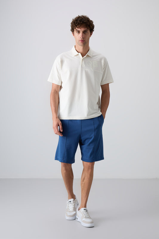Ecru Thick Soft Textured Cotton Oversize Fit Printed Polo Collar Men's T-Shirt - 88347