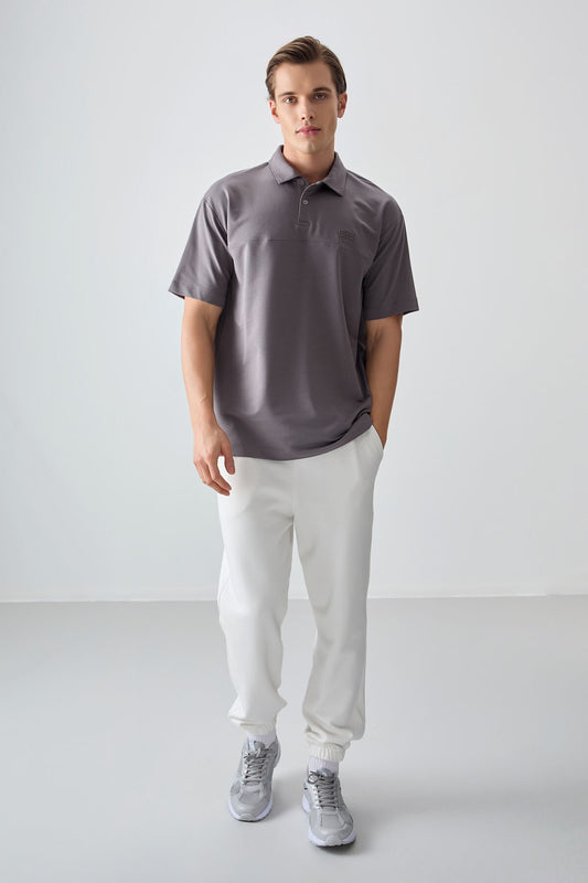 Dark Grey Cotton Thick Soft Textured Oversize Fit Basic Polo Collar Men's T-Shirt - 88327