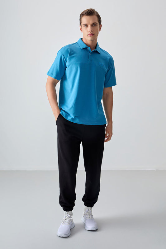 Petrol Blue Cotton Thick Soft Textured Standard Fit Basic Polo Collar Men's T-Shirt - 88348