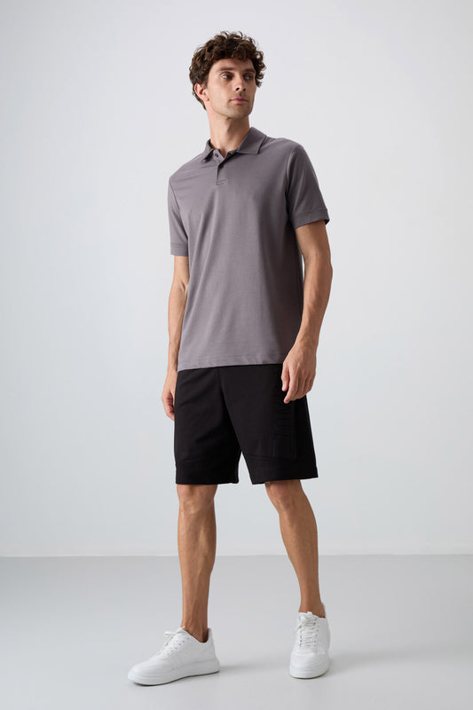 Dark Grey Cotton Thick Soft Textured Standard Fit Basic Polo Collar Men's T-Shirt - 88351