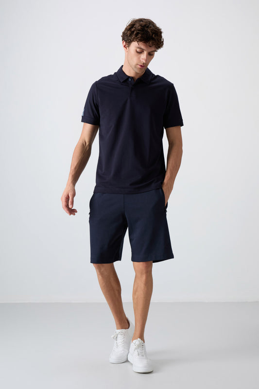 Navy Blue Cotton Thick Soft Textured Standard Fit Basic Polo Collar Men's T-Shirt - 88351