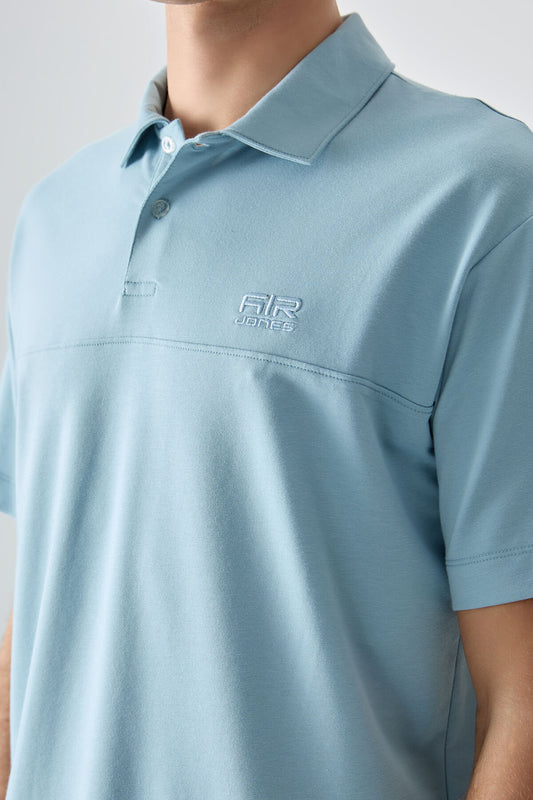 Light Blue Cotton Thick Soft Textured Polo Collar Oversize Fit Basic Men's T-Shirt - 88382