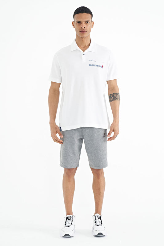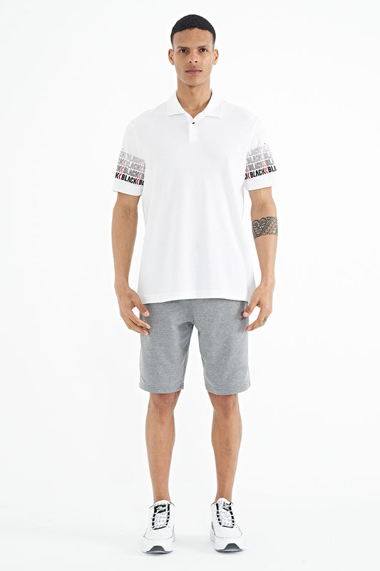 White Print Standard Fit Polo Collar Men's T-shirt - 88236