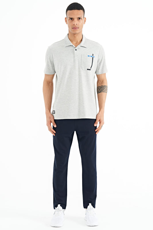 Grey Melange Detailed Printed Standard Fit Polo Collar Men's T-Shirt - 88241