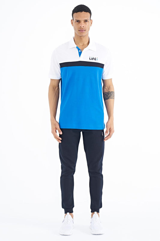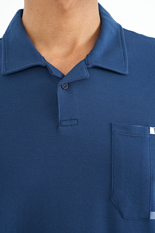 Indigo Chest Detailed Printed Standard Fit Polo Collar Men's T-Shirt - 88241