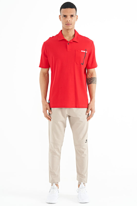 Red Pocket Detailed Printed Standard Mold Polo Collar Men's T-Shirt - 88241