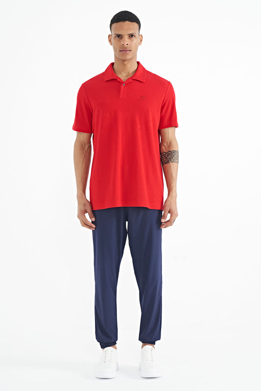 Red Polo Collar Logo Embroidered Standard Fit Men's T-shirt - 88237