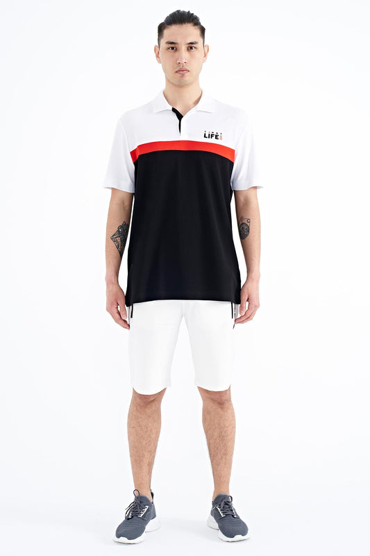 White Logo Printed Standard Fit Polo Collar Active Sports Men's T-Shirt - 88252