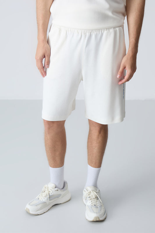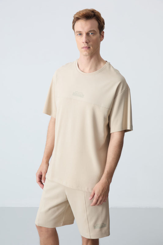 Beige Cotton Thick Soft Textured Oversize Fit Basic Men's Shorts Set - 85258