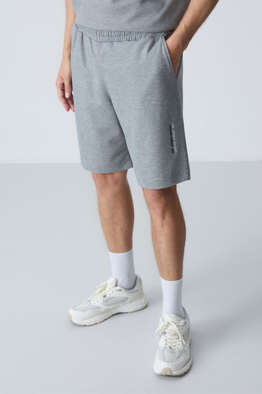 Grey Melange Cotton Thick Soft Textured Oversize Fit Basic Men's Shorts Set - 85257