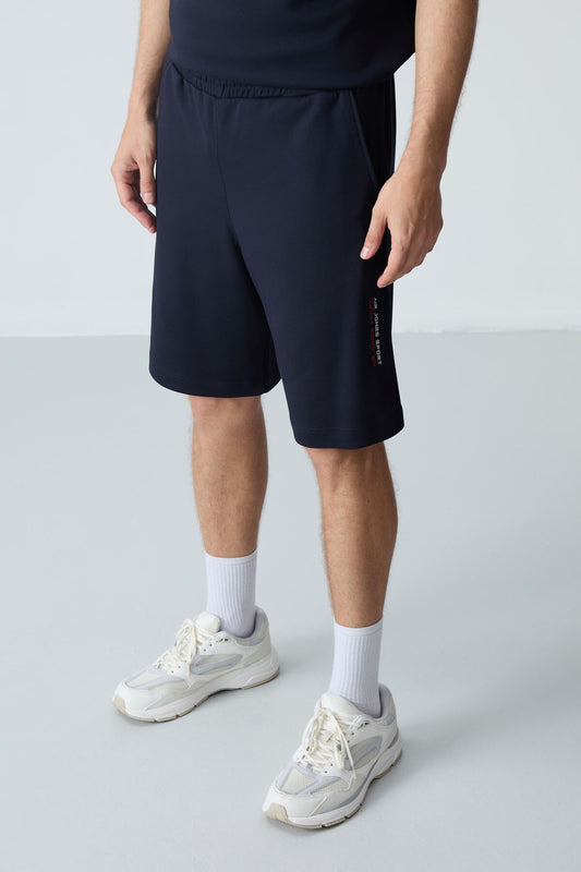 Fiesta - Navy Blue Cotton Thick Soft Textured Oversize Fit Basic Men's Shorts Set - 85259
