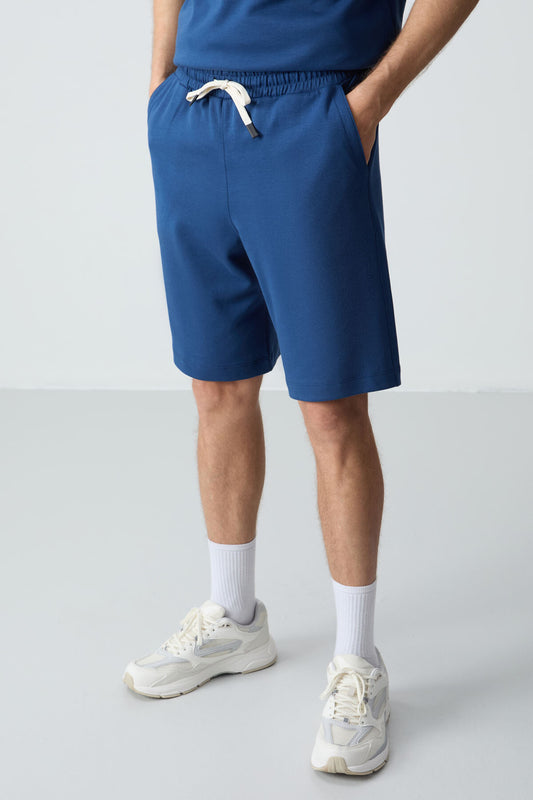 Petrol Cotton Thick Soft Textured Oversize Fit Basic Men's Shorts Set - 85257