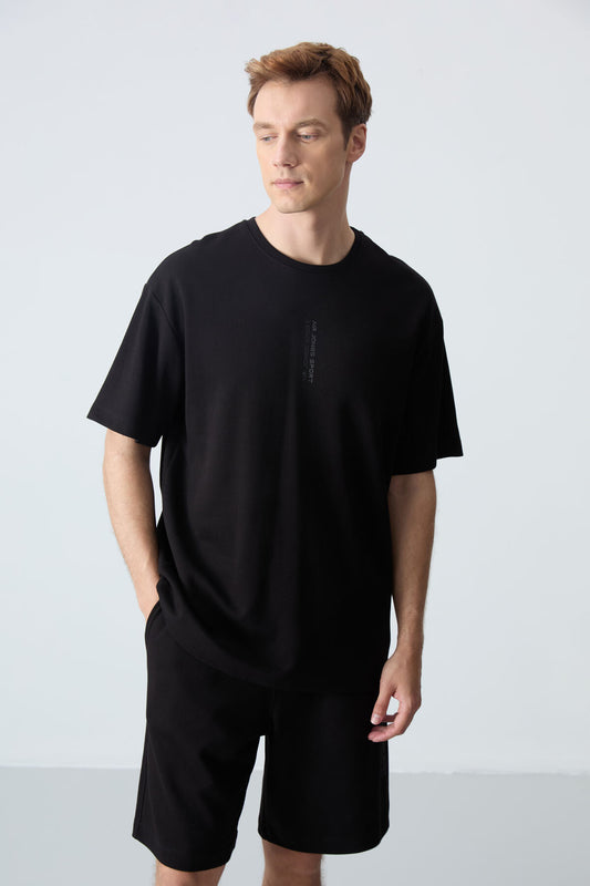 Black Cotton Thick Soft Textured Oversize Fit Basic Men's Shorts Set - 85257
