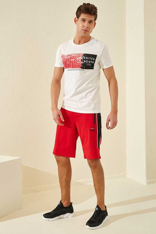 Red Side Striped Standard Fit Men's Shorts - 81148