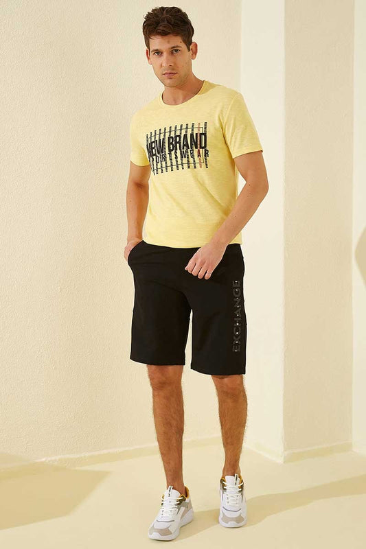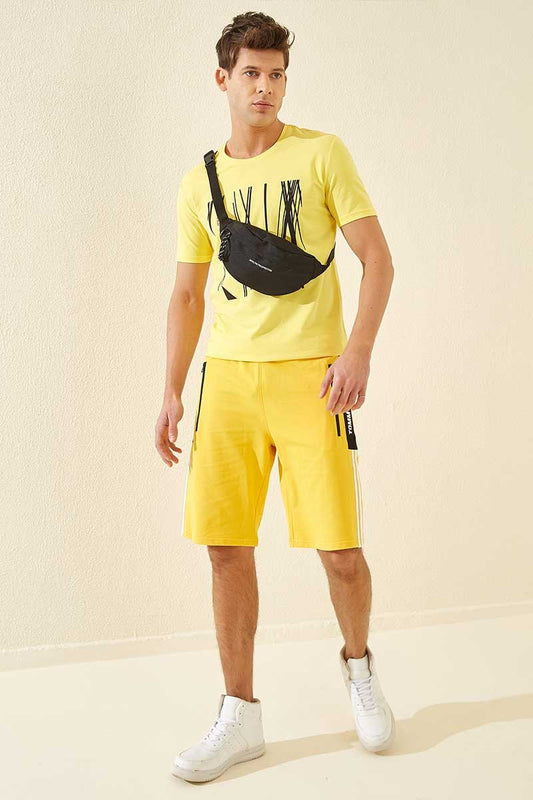 Yellow Side Stripe Printed Standard Fit Men's Shorts - 81145