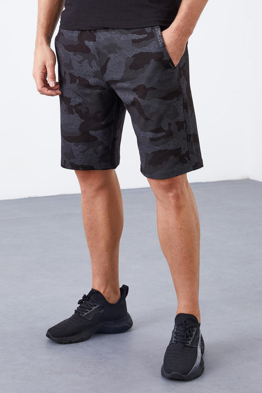 Black Camouflage Camouflage Pattern Pocketed Standard Fit Men's Shorts - 81126