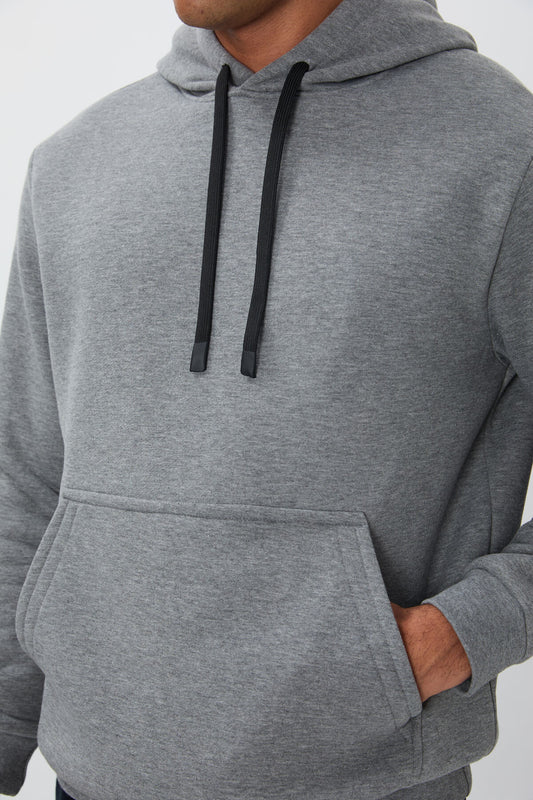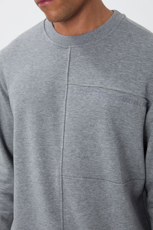 Grey Melange Cotton Thick Inner Fleece Soft Texture Comfort Fit Embroidered Men's Sweatshirt - 88417