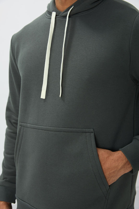 Standard Fit Basic Men's Stone Cotton Soft Woven Sweatshirt - 88363