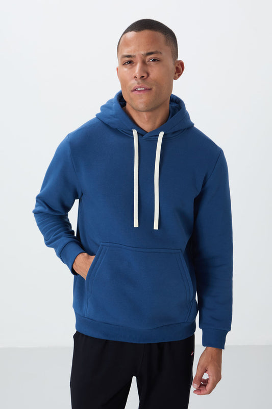 Navy Blue Compact Cotton Thick Smooth Textured O Collar Standard Fit Men's Sweatshirt -88405