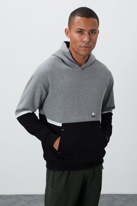 Grey Melange Cotton Thick Fleece-Lined Soft Texture Comfort Fit Embroidered Men's Sweatshirt - 88419