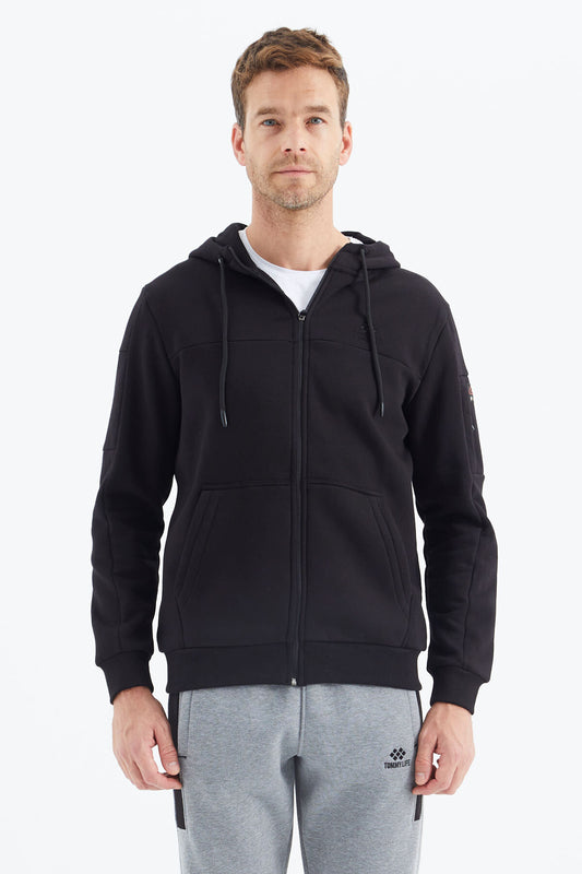 Black Cotton Soft Textured Standard Fit Basic Men's Sweatshirt - 88363