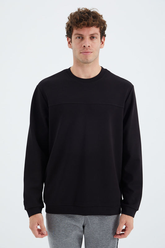 Black O Collar Front Stitch Detailed Basic Relax Fit Men's Sweatshirt - 88270