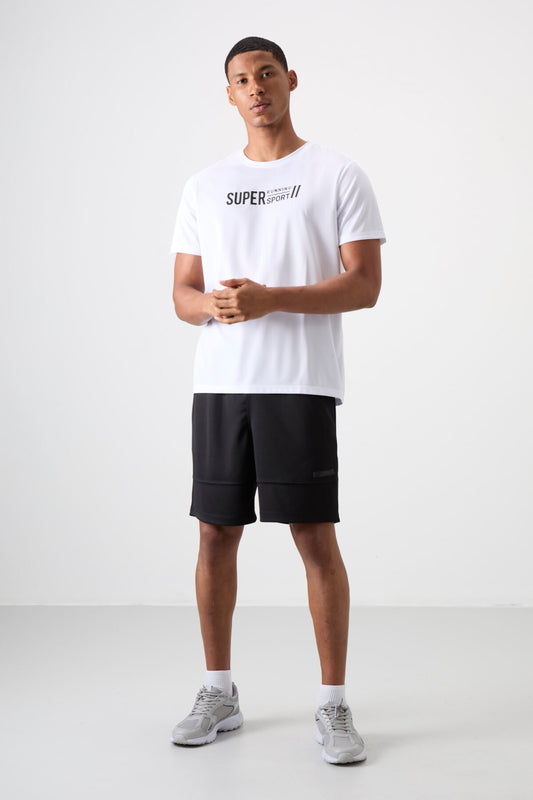 White Polyester Breathable Textured Thin Flexible Standard Fit Men's Performance T-Shirt - 88385