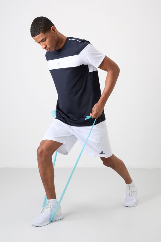 Navy Blue Polyester Breathable Textured Thin Flexible Standard Fit Men's Performance T-Shirt - 88396