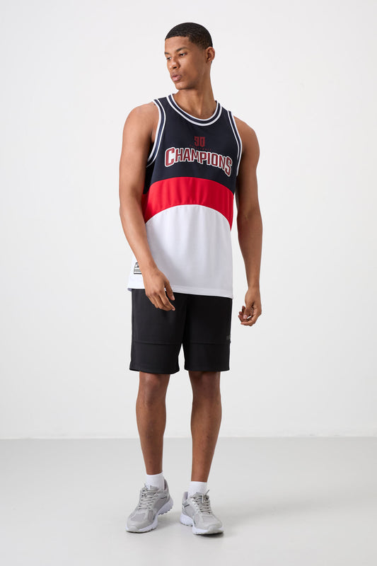 White Polyester Breathable Textured Thin Flexible Standard Fit Men's Basketball Singlet - 88395