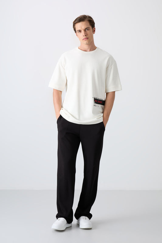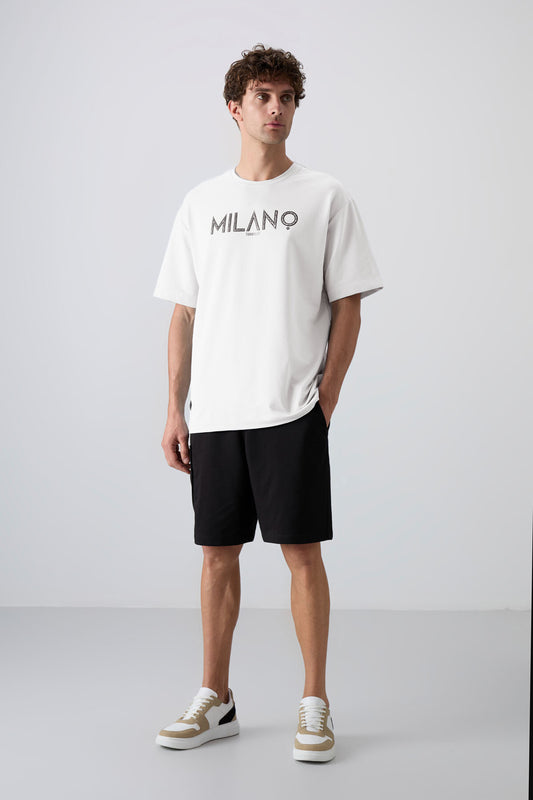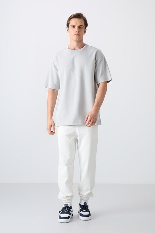 Ecru Thick Cotton Soft Textured Oversize Fit Printed Men's T-Shirt - 88345