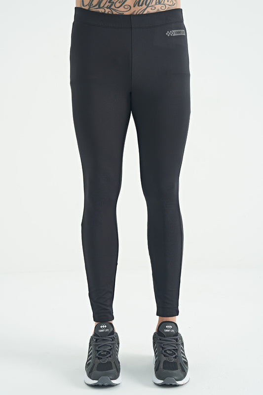 Black Back Ankle Print Detailed High Waist Slim Fit Active Sports Men's Tights - 84988