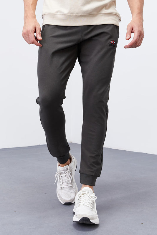 Anthracite Melange Laced Hem Standard Fit Classic Cuff Men's Tracksuit Bottom - 84682