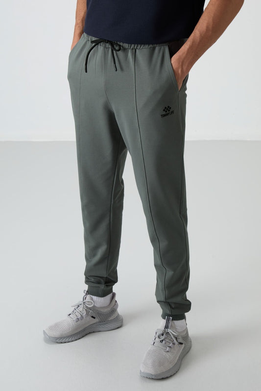 Khaki Laced Pocketed Standard Fit Classic Cuff Men's Tracksuit Bottom - 84682