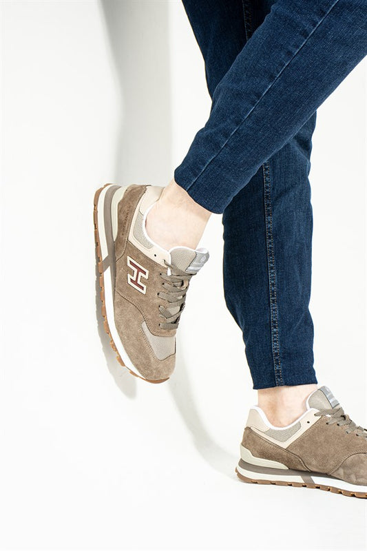 Chile Genuine Leather Taupe Grey Men's Sports Shoes
