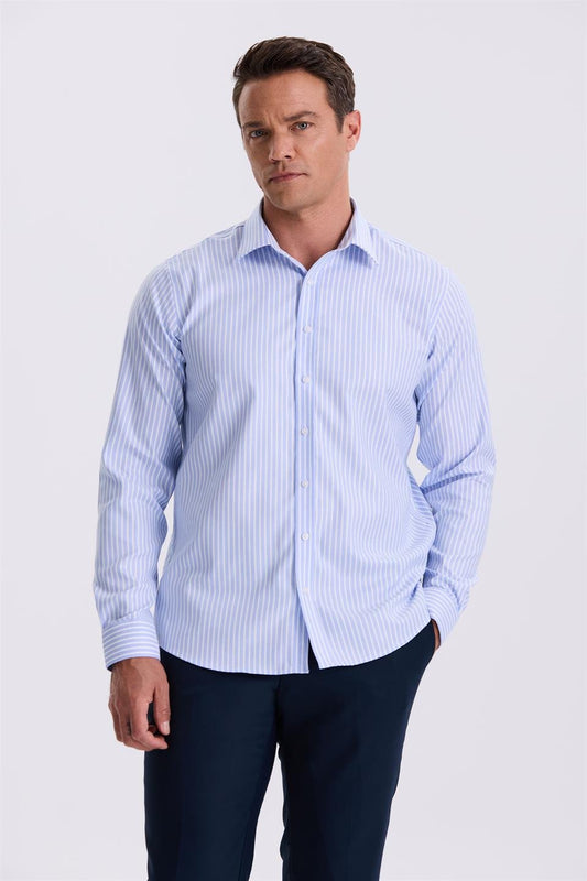 Blue Comfort Fit Non Iron Shirt With 100% Cotton Stripes And No Need For A Top