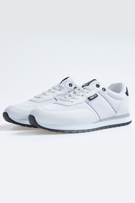 White Laced Full Grain PU Leather Men's Sports Shoes - 89114