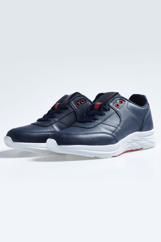 Navy Blue Laced Detail PU Leather Men's Sports Shoes - 89114