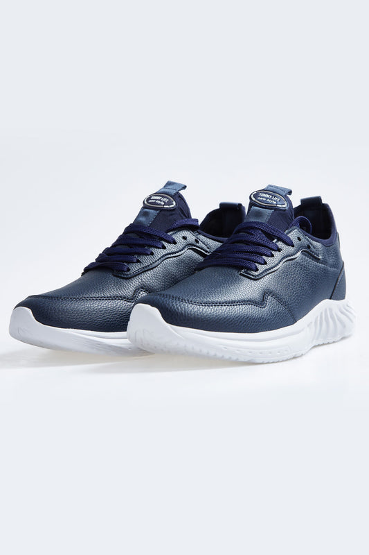 Navy Blue High Sole Laced PU Leather Men's Sports Shoes - 89115