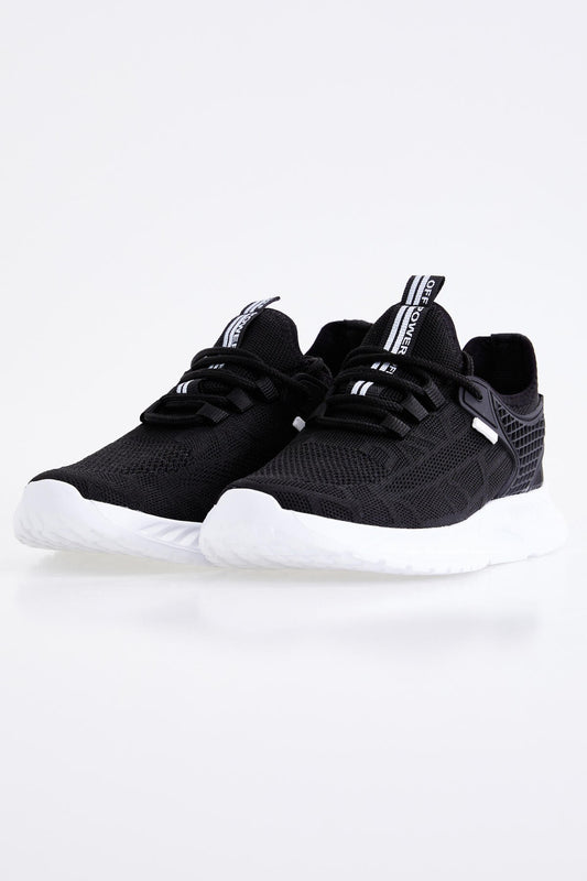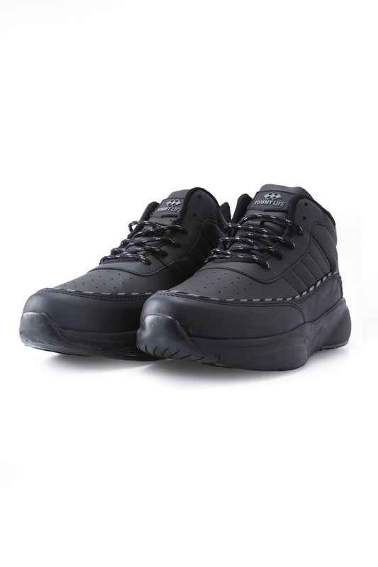 Black - White Laced Detailed High Sole Men's Sports Shoes - 89100