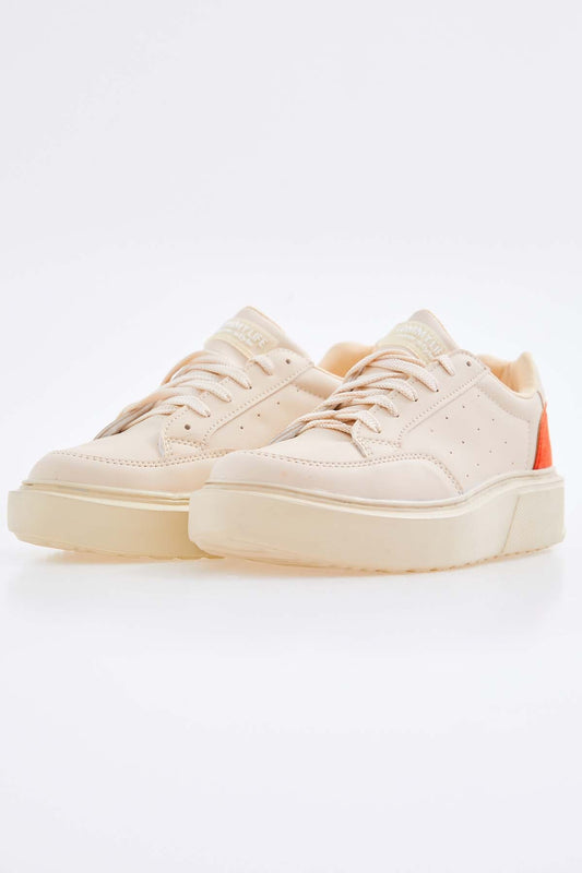 White - Beige Laced Strip Detailed PU Leather Women's Sports Shoes - 89202