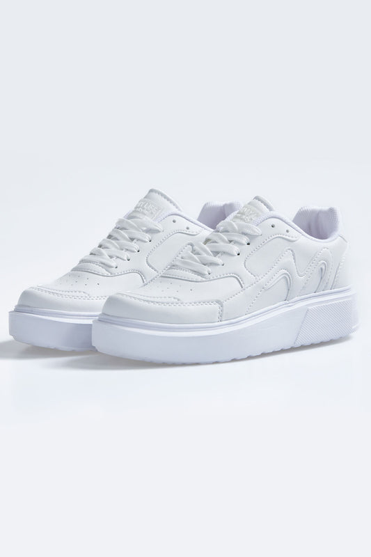 White Laced High Sole PU Leather Women's Sports Shoes - 89200