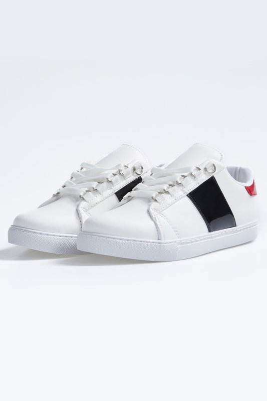 White - Black Laced Strip Detailed PU Leather Women's Sports Shoes - 89202