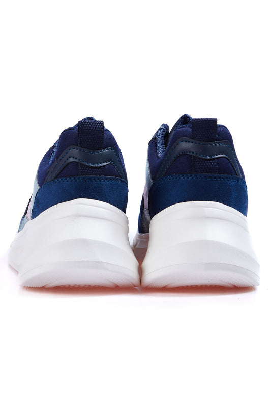Navy Blue Laced High Sole File Detailed Colorful Women's Sports Shoes - 89203