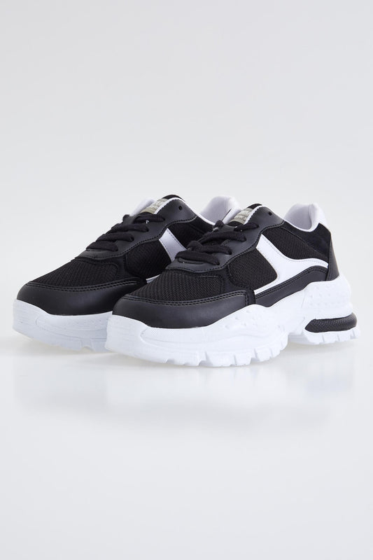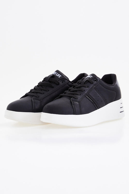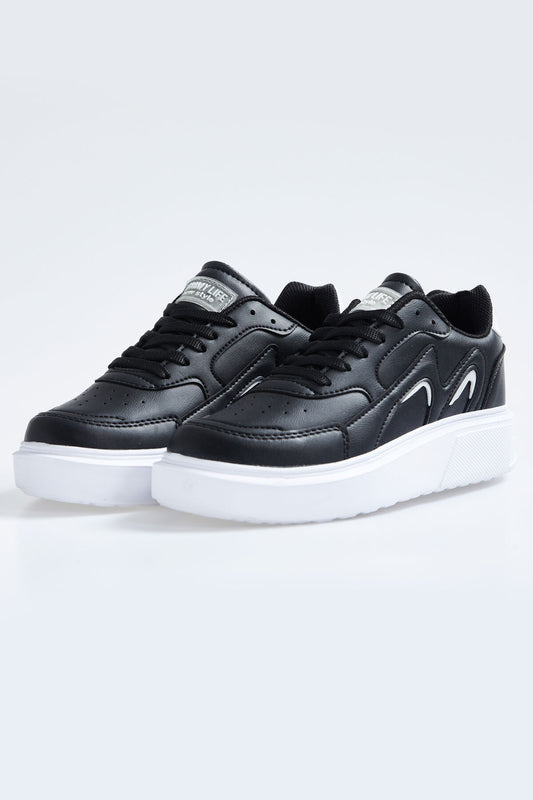Black Laced High Sole Daily Women's Sneakers - 89071
