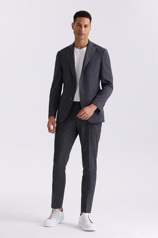 Saks Slim Fit Single Collar Tensel Fabric Double Tear Bags Pocket Suit,